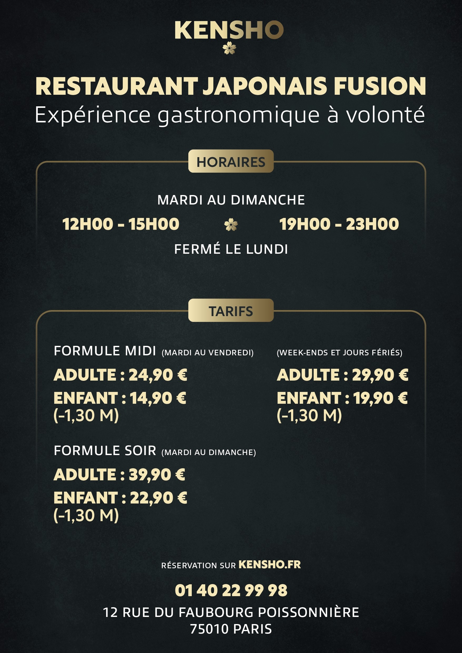 Nous finalisons les derniers préparatifs. Revenez très bientot pour découvrir notre menu et réserver votre table